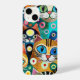 Esta capa de telefone de abstrato bonita apresenta uma colagem de gatos engraçados com olhos grandes. A imagem colorida está em tons de azul, cor de laranja, verde, vermelho, rosa, amarelo e branco. Colorida, e definitivamente apanhadora de olhos!