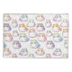 Os cartoons de Chubby, felinos e corações em várias cores pastéis, enchem a imagem branca, sem costura, cada um com uma forma giro, arredondada e expressões doces no estilo kawaii japonês