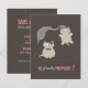Anuncie o seu noivado / casamento de uma forma pouco convencional com este engraçado convite "Salve a data" com ilustração de gatinhos de desenho animado. Noiva feliz pulando de alegria e um noivo realmente intrigado.