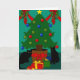 Design da arte gráfica com gatos sob uma árvore de Natal decorada, cercada por presentes.