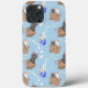 Gatos em xícaras e caixas e gotas de leite em fundo azul