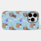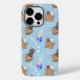 Gatos em xícaras e caixas e gotas de leite em fundo azul