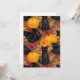 Padrão pintado à mão com gatos pretos, abóboras e folhas de outono. Mídia mista - pintura digital e aquarela.