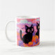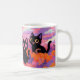 Quatro gatos pretos brincalhões sentam alegremente entre um pedaço de abóbora, seus olhos largos brilhando com curiosidade e charme. O céu pastel oscila com pinças sonhadoras, púrpuras e laranjas, pontilhadas com nuvens, estrelas e pequenos morcegos. Com sua mistura de assustador e doce, esta trabalho de arte capta perfeitamente a magia acolhedora do Halloween.