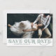 Anuncie sua data de casamento com esta foto clássica, salve o cartão de data. Apresenta a tipografia de deco de arte verde com um padrão de correspondência. Personalize adicionando sua foto e detalhes. Este elegante tema de vintagem, que salva o anúncio de data, é perfeito para casamentos temáticos de Gatsby.