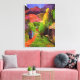 Paul Gauguin Road em plástico de canvas de Tahiti. Pintura a óleo na canvas desde 1891. Gauguin é um artista conhecido por suas pinturas do Taiti. A estrada no Taiti é um bom exemplo da visão vibrante do artista da ilha tropical. Duas mulheres caminham por uma estrada de terra vermelha enquanto um cavalo esfola a grama verde perto de uma cerca. Uma jovem se senta com pernas cruzadas com o queixo na palma na varanda de uma cabana com palmeiras e montanhas roxas e vermelhas no fundo. Um presente de excelente para fãs de Gauguin, Cloisonnismo, poste-impressionismo e pinturas tropicais.