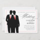 Uma variação personalizada por solicitação do cliente com gravatas vermelhas do hetero no lugar das gravatas pretas do arco. Para o eloquente casal gay: Dois grupos legal em silhuetas brancas e pretas, emparelhados com um roteiro elegante neste convite de casamento gay (com sotaques vermelhos). Por favor, entre em contato comigo para obter edições personalizadas, como mudar uma silhueta ou se você tiver alguma dúvida. Obrigados para procurar!