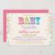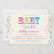 Este arco-íris que o bebê hued polvilha o convite é perfeito para que a mamã espere um bebé. Este design de vista festivo e saboroso com umas bolinhas diagonais de creme listrou o fundo e os confetes coloridos projetam no rosa quente, verde limão, amarelo, as cores azuis do roxo e do aqua lembrá-lo-ão de um cupcake delicioso com glacé branco e polvilham-no. Projetado por Chrissy H. Estúdio, LLC. Todos os direitos reservados.
