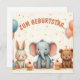 Ein zauberhaftes Geburtstagsmotiv mit einem fröhlichen Elefanten, einem niedlichen Hasen und einem lachenden Bären - umgeben von Ballons, Cupcakes und Konfetti. Dieses Bild fängt die kindliche Magie, Freude und Freundschaft auf liebevolle Weise.