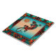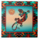 Dê uma olhada em sua casa com esta Gecko única e um Azulejo de cerâmica Sun! Apresenta um Lizard Gecko Sudoeste e um Sol num Fundo Turquesa e Laranja Sunset..... Cercado por uma Turquesa, Borda Laranja e Negra!