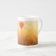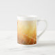 Uma teia de aranha-da-seda coberta com gotas espumantes de orvalho na luz quente do sol de uma manhã de outono de ouro. As últimas folhas laranja de uma árvore ficam atrás da teia, refletidas nas gotículas.