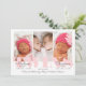 Lindas de rosa, este anúncio de nascimento de gêmeos apresenta uma colagem de 3 fotos dos seus doces feixes de alegria! Cada linha de texto é fácil de personalizar com os detalhes do seu bebê e do nascimento. No verso, um fundo rosa e pontilhado coordena e completa o design.
