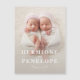Foto gêmea moderna geométrica + anúncio de nascimento tipográfico. A cor de fundo pode ser alterada.