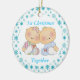 O maravilhoso primeiro Natal Juntos, o ornamento de bebês tem bebês gêmeos e bebês gêmeos com a frase "1rua de Natal Juntos" sobre o fundo do floco de neve. Um belo presente para um chá de fraldas gêmeo ou um gatilho para os pais de gêmeos.
