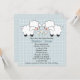 Dois carneiros adoráveis em um fundo azul claro de gingham faz um doce chá de fraldas convite para que a nova mamãe esperasse gêmeos. Trabalho de arte © Chrissy H. Studios, LLC. Todos os Direitos Reservados.