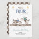 Prepare-se para o dobro da diversão enquanto agimos para celebrar os gêmeos de aniversário! Nosso convite editável apresenta motos dinâmicos de sujeira verde e azul, prontos para entrar nos trilhos com o slogan 'Precisa de quatro velocidades'. Personalize todos os detalhes para uma emocionante festa de aniversário que certamente será duas vezes mais excitante!