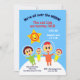 Celebre o primeiro aniversário dos seus gêmeos bebês com este convite geométrico e moderno, com uma família fofa no espaço! Eles estão por toda a lua, significando, eles são extremamente felizes, é claro, e querem que você se junte à festa! O fundo deste convite de festas apresenta pontos coloridos que parecem confete festivo e um sol brilhante sorridente. Este cartão é versátil porque é perfeito para um aniversário com tema espacial ou para qualquer outra ideia. É fácil personalizar este simples e fofo convite de festas com seus próprios detalhes.