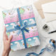 Este menino bonito & gêmeos da menina - o papel de envolvimento do chá de fraldas da cegonha caracteriza um azul, branco e o fundo cor-de-rosa, as nuvens e um carregando da cegonha juntam um bebé e um bebé. Os bebês têm o cabelo e pacifiers marrons em uma luz - cobertura verde com bolinhas verdes. O bebé tem uma fita cor-de-rosa do cabelo. O texto decorativo é chá de fraldas, ele é gêmeos! Aperfeiçoe envolvendo presentes do chá de fraldas. Escolha seus meios e tamanho do papel de envolvimento.