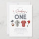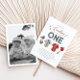 Celebrem o primeiro aniversario de junção temática Baseball de seus gêmeos com este design com 'Nossos pequenos novatos estão virando uma' tipografia e elementos de aquarela detalhados ao redor dela. Nesta design, você também pode adicionar sua própria foto ao fundo.