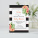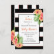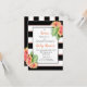 Um design de flor tropical brilhante num cartão que possa ser personalizado. Adicione seus próprios nomes e datas aos espaços personalizáveis. Você pode até mudar a palavra gêmeos para bebês, um menino, ou uma garota, se quiser. As flores são colocadas sobre uma faixa preta e branca com uma sutil linha rosa-coral para acentuar a sensação tropical.