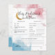 Divertido com o tema da lua, a menina e os gêmeos chás de fraldas, predições de bebês e cartões de aconselhamento com uma arte aquosa de cor rosa e azul com lua brilhante de ouro falso. Os textos são editáveis. Um jogo perfeito para jogar durante o chá e definitivamente será um excelente! O cartão aos hóspedes para predizer como o bebê se pareceria.
