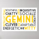 Apresentando palavras que descrevem o nascer da pessoa sob o sinal de ar astrológico mutátil de Gemini no Zodíaco.