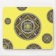 Essa mandala temática do Gemini apresenta uma pedra cítrica cercada pelo símbolo do cartaz, a constelação, e o símbolo alquímico do Ar entre filigrana e tecelagem.