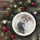 Cartões de natal geométricos elegantes em forma redonda única apresentam seu conjunto de fotos favorito dentro a gemstone inspirado em folha de ouro falsa, acentuado com folhas de cor aquosa verde e bagas vermelhas. Personalize com seu cartões de natal personalizado, seus nomes, e o ano atrás em letras brancas em um fundo verde caçador.