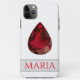 Gemstone Pear Ruby, fachada com capas de iphone vermelha, com seu nome