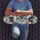 Brilha nas rodas! Este skate apresenta um design abstrato ousado e vibrante com formas brilhantes em cores semelhantes a joias contra um fundo texturizado. Perfeito para skatistas que querem um conselho que é tão atraente e único como o seu estilo.