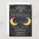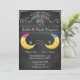 Este convite de festas revela-se feito em uma moda, tipografia chic chalkboard. Absolutamente adorável com um homem rosa e azul na lua. Você pode personalizar o convite facilmente preenchendo o modelo fornecido. Este convite revelador de gênero também tem um preço perfeito para a mãe e pai do orçamento.