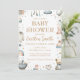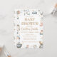 Este convite neutro de gênero apresenta itens para bebês em azul, pinks e cores creme.