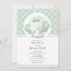 Um chuveiro de bebê unisex convida um adorável elefante de bebê, esportando um arco de menta em sua cabeça contra uma menta e um padrão de diamante branco. CORRESPONDENDO a itens na nossa loja.