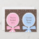 Uma festa reveladora de gênero pode ser excelente divertida para familiares próximos e amigos. A frente deste convite de festas revela um chocalho rosa de um lado e um chocalho azul do outro. No verso do convite, encontrará metade rosa e metade azul e um ? em cada lado do convite. Uma maneira muito divertida e fofa de convidar seu convidado para uma festa de revelação de gênero e deixar que todos saibam se é uma garota ou um menino? Direitos autorais