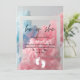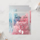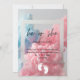Design apresenta explosão colorida de fumaça no convite para tipografia rosa e azul.