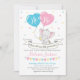 Ele ou ela? Qual será o nosso amendoim? Este doce convite elefante com balões e corações azuis e cor-de-rosa é perfeito para convidar seu convidado para sua festa de revelação de gênero!