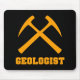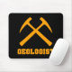 Geólogo - mousepad preto com rotulação escolar alaranjada do estilo e os martelos cruzados da rocha gráficos.