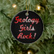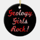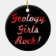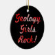 Este ornamento pendurado mostra a frase "Geology Girls Rock!" Porque eles têm! A fonte está vermelha com um padrão turvo aplicado.