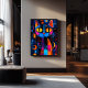 Este trabalho de arte abstrato surpreendente combina texturas expressionistas e padrões geométricos, criando uma composição ousada e cativante. Os olhos do ouro perfurante do gato contrastam com uma vibrante mistura de azuis profundos, laranjas ferozes, e pinks elétricos, dando-lhe uma presença misteriosa, mas lúdica. Uma homenagem à graça felina e à arte moderna, esta peça é perfeita para amantes de gatos, entusiastas da arte contemporânea, e para aqueles que buscam uma declaração ousada e atraente de decoração.