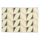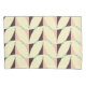 Geometric pattern with overlapping beige, peach, and brown triangles, accented by teal circles. The design forms a zigzag, creating a retro vibe.