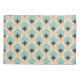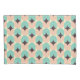 Geometric pattern of teal, beige, and black shapes forming a retro, symmetrical design. The tones convey a vintage, stylish atmosphere.