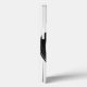 This bold, graphic cat illustration features a stylized feline in profile, centered against a clean white background with a subtle black line border. Black and white concentric circles form its body, accented by vibrant red circles for a pop of color. With simplified features like prominent ears and a sleek tail, this modern, geometric artwork evokes a contemporary, abstract vibe with even lighting and a serene feel.
