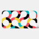 Padrão abstrato feito com formas geométricas circulares coloridas. São usados cores vermelho, azul, amarelo e preto. Fundo vetorial lúdico, divertido e moderno para a design gráfica.