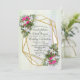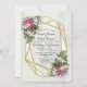 Molduras Douradas geométricas em papel texturizado com lírios brancos Amaryllis, samambaias e flores cor-de-rosa avermelhadas para um casamento de primavera ou verão
