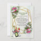 Quadros geométricos Dourados de brilho em papel texturizado com lírios brancos Amaryllis, samambaias e flores cor-de-rosa avermelhadas para um casamento de primavera ou verão para o Groom