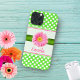 Uma bela margarida primavera com um pano de fundo branco de bolinhas. Adicione seu nome para tornar isso ainda mais exclusivo. Além disso, seria um belo presente de Dia de as mães!