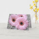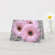 Gerberas rosa com um grupo de pequenas flores brancas. Há postagem correspondente.