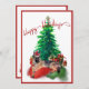 Surpreenda os amantes do cão em sua vida com este cartão lúdico! Um belo e German shepherd relaxa em frente a uma árvore de Natal parecendo real e digna. Presentes bonito e um chapéu de santa no filhote, tudo feito em aquarela. Pop brilhantes de vermelho e verde realmente se destacam contra o fundo branco! As palavras "Felizes Feriados" também são escritas. O verso tem uma mensagem que pode ser alterada para sua própria mensagem pessoal. Basta clicar no botão editar. Um cartão de boas-vindas de Natal realmente incrível. Especialmente para os amantes do German shepherd na sua lista!