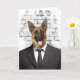 German shepherd de traje preto para parabéns de aposentadoria.