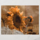Vintage, antigo girassol gigante contra papel de raspagem do céu colorido de sépia castanha. Bonito folha de música rústica floral de canto hino. Linda, moderna e retrógrada arte. Este artigo de 110 lb pode ser usado para seus projetos de álbum de fotos, artesanato ou desvinculação que exigem papel mais pesado. Imagem copyright Marg Seregelyi Fotografia.